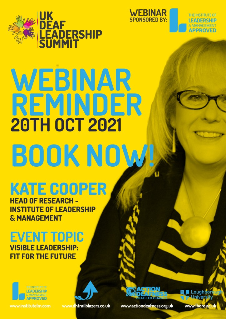 In our next webinar, Rebecca Mansell, CEO, British Deaf Association will be talking about her Journey to CEO and what leadership means to her. We will also be asking her to comment on the new British Sign Language Act which was given Royal Ascent last month and what it will mean for leaders of all types of organisations and businesses.